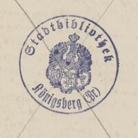 Acc. nr 506 (k. 1r), pieczęć okrągła: Stadtbibliothek Königsberg (Pr) - k. 2v - Prawa