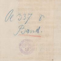 - Sygnatura Oe 338 8, pieczęć okrągła: Stadtbibliothek Königsberg i. Pr. (odwrocie dokumentu)