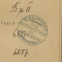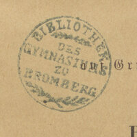 - Pieczątka okrągła Bibliothek des Gymnasiums zu Bromberg wraz z odręcznymi sygnaturami