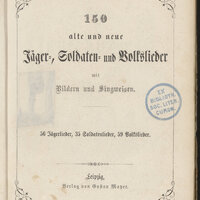 - 150 alte und neue Jäger-, Soldaten- und Volkslieder mit Bildern und Singweisen. 56 Jägerlieder, 35 Soldatenlieder, 59 Volkslieder