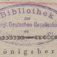 - Pieczątka okrągła: Bibliothek Königl Deutschen Gesellschaft zu Könibsberg Pr.