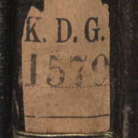 - Pieczątka owalna wkolorze niebieskim: Königl: Deutsche Gesellschaft in Königsberg. Grzbiet książki - sygnatura K.D.G. 1579.