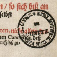 - Zapiska proweniencyjna i pieczątka; pieczątka okrągła: BIBLIOTHEK DES KOENIGL. GYMN. ZU CONITZ; sygnatury: Nr 228, E. 77, E 109,4.