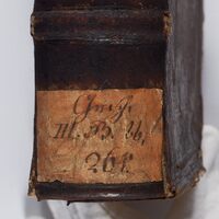 - 1. Pieczątka "Biblioth. Gymnas. Leobschütz" [=Königliches Katholisches Gymnasium (Głubczyce). Biblioteka.] ; 2. czerwona nalepka z odręczną sygnaturą na grzbiecie: Gesch. III. B. bb. 261.