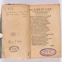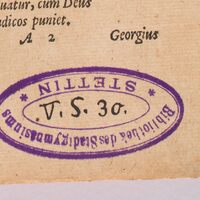 - 1. Pieczątka "Bibliothek des Stadtgymnasiums Stettin" z sygnaturą "V. S. 30." ; 2. Nalepka grzbietowa z sygnaturą "Ci 458".