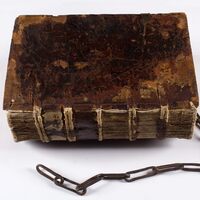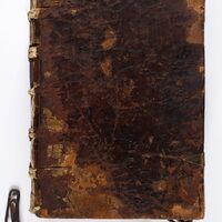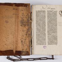 Casus longi super quinque libros Decretalium / Bernardus Parmensis - okładzinówka (deska) i pierwsza zachowana karta -