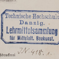 - Pieczątka prostokątna: Technische Hochschule Danzig. Lehrmittelsammlung fü Mittelalt. Baukunst.