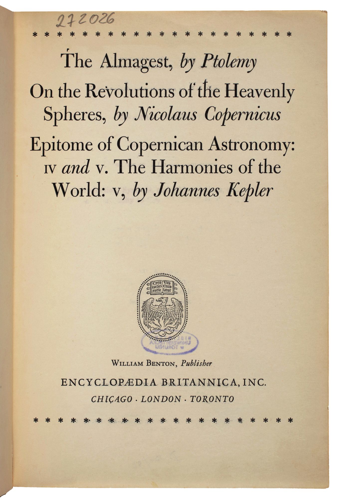 Part of On the Revolutions of the Heavenly Spheres, translated by Charles Glenn Wallis