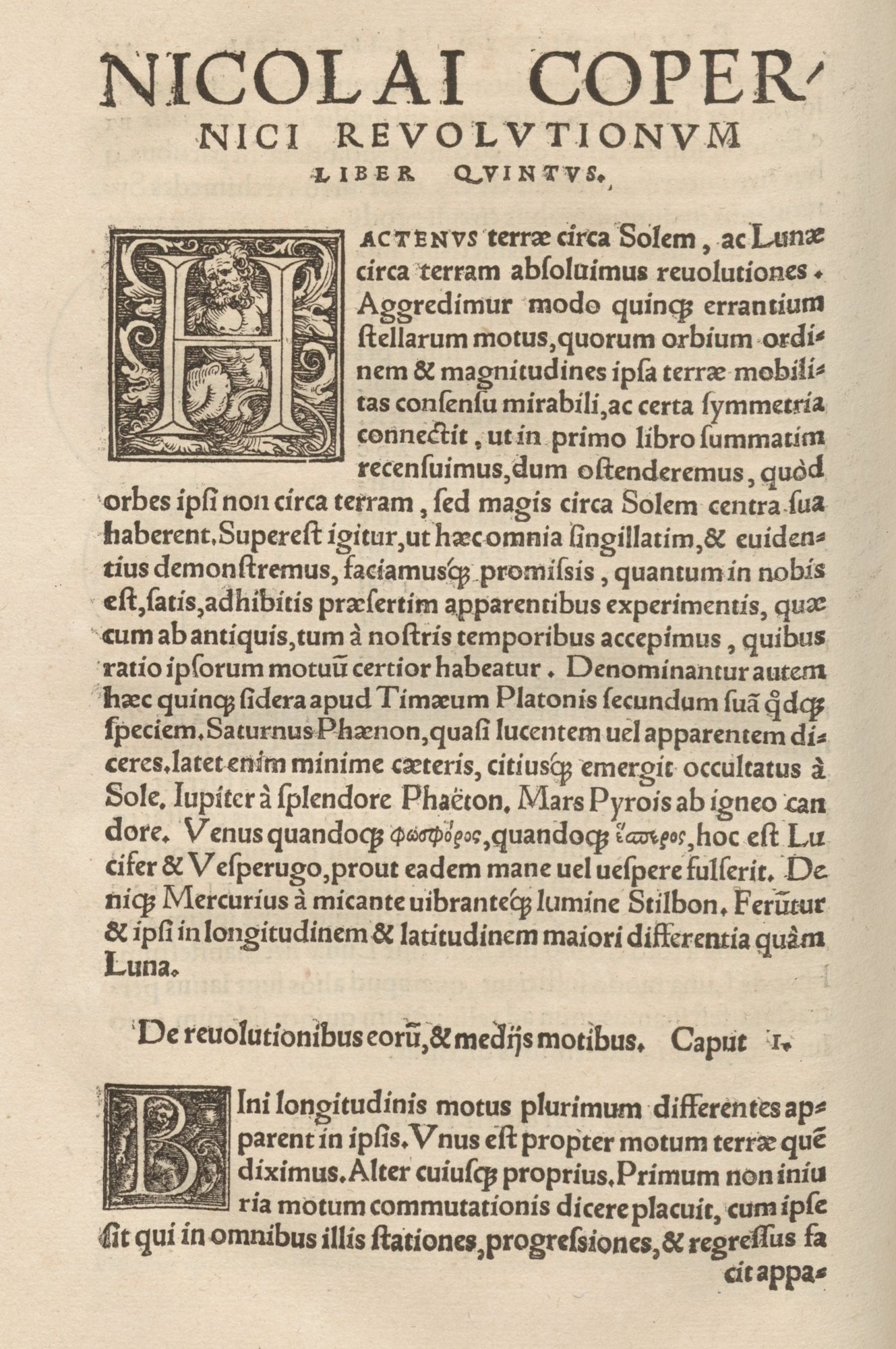 Part of Pierwsza karta z księgi piątej pierwszego wydania De revolutionibus Mikołaja Kopernika