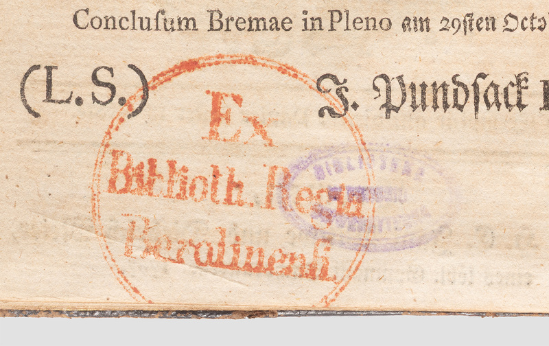 Neues Bremisches Psalm und Gesangbuch... - pieczątka okrągła (tusz czerwony) „Ex Biblioth. Regia Berolinensi.”