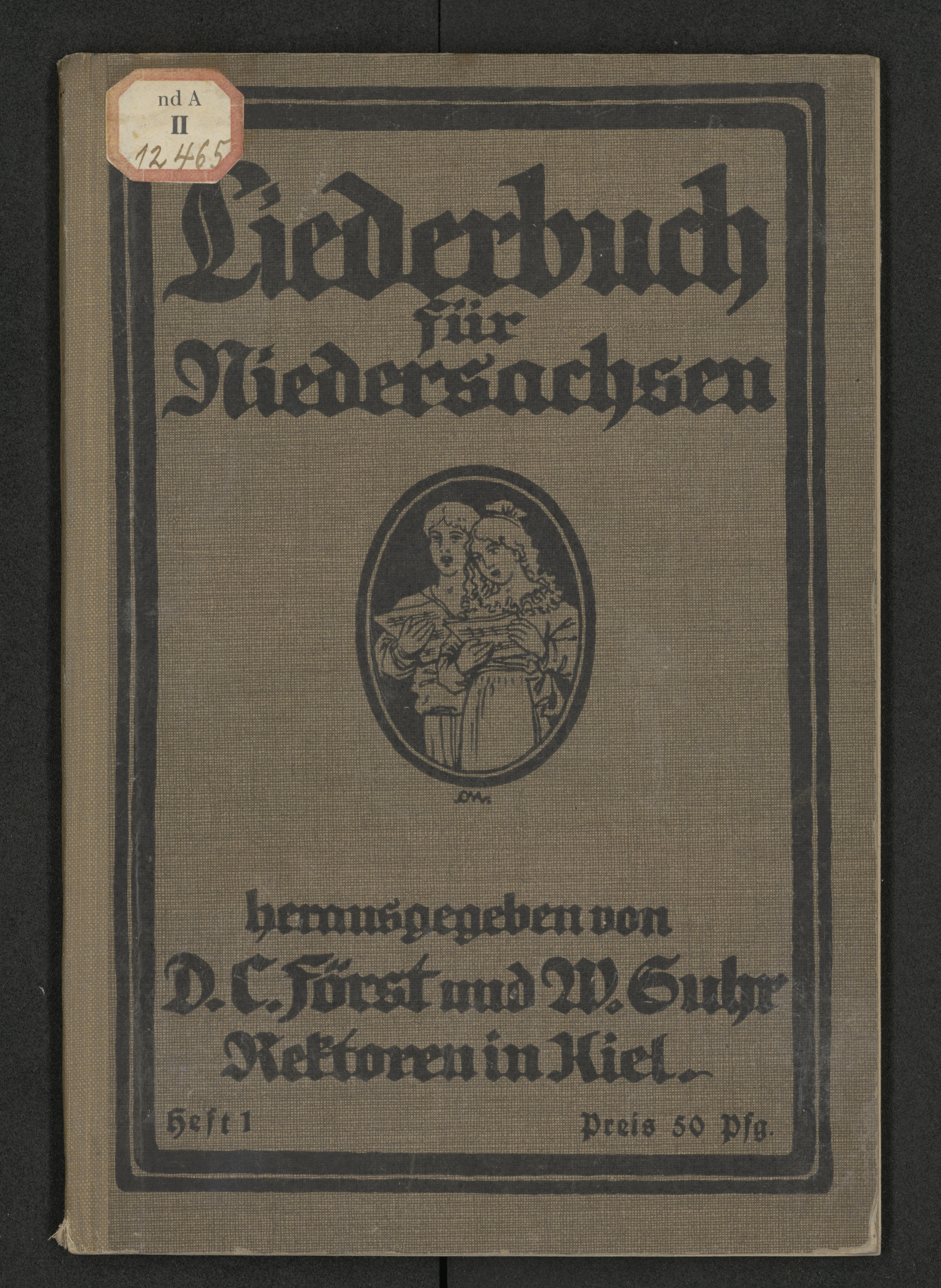 Liederbuch für Niedersachsen. H. 1, Unterstufe - okładka przednia - nalepka sygnaturowa i ołówkowa: nd A II 12465
