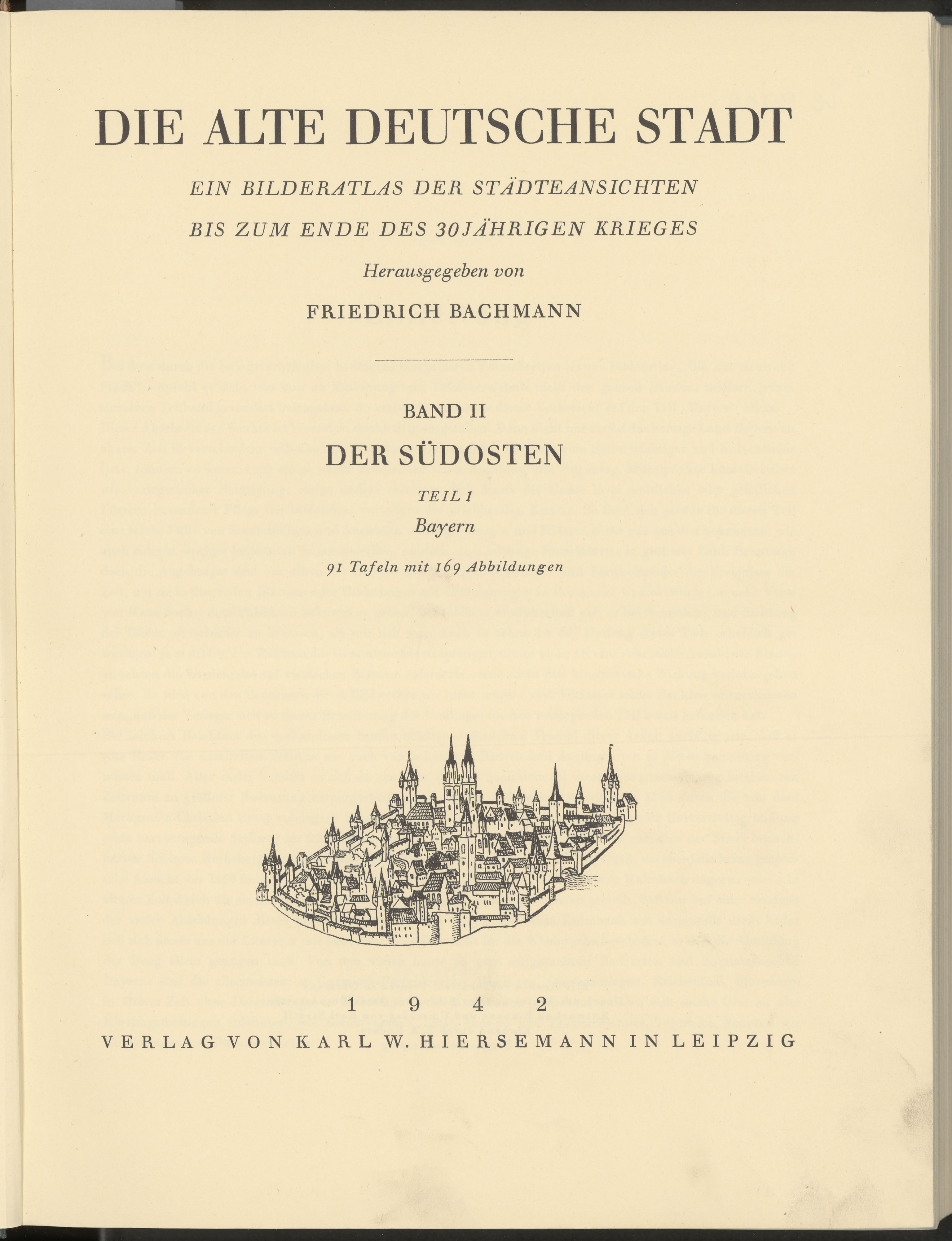Die alte deutsche Stadt : ein Bilderatlas der Städteansichten bis zum Ende des 30 jährigen Krieges ; Band II ; Der Südosten ; Teil 1, Bayern - strona tytułowa
