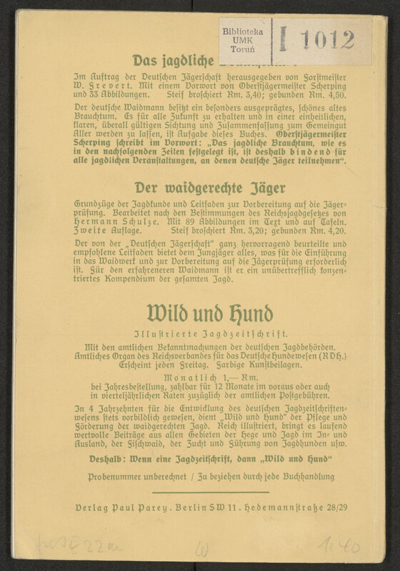 So blasen die Jäger! Anleitung zum Jagdhornblasen mit den bei der Deutschen Jägerschaft gebräuchlichen Signalen - okładka tylna