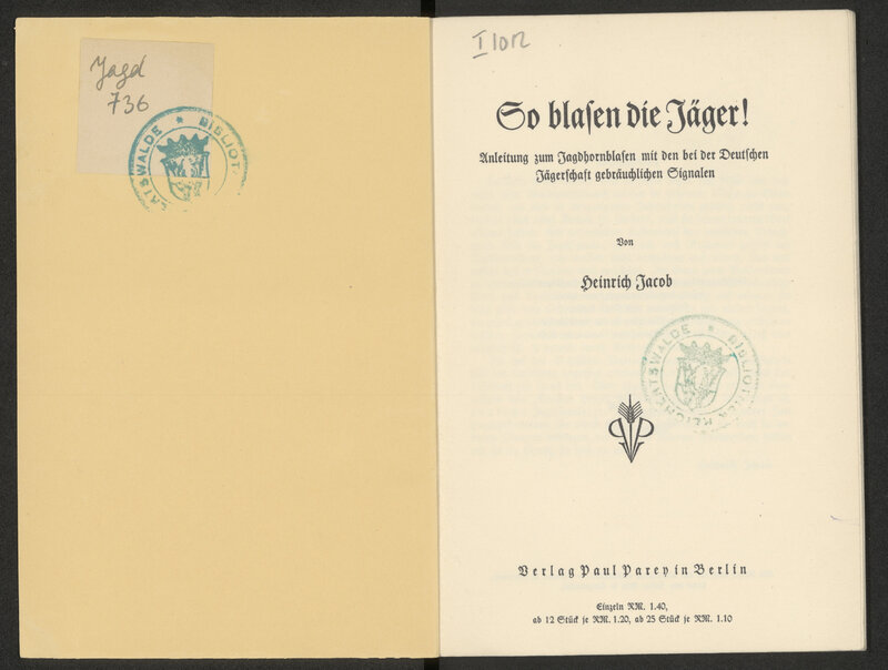 Part of So blasen die Jäger! Anleitung zum Jagdhornblasen mit den bei der Deutschen Jägerschaft gebräuchlichen Signalen