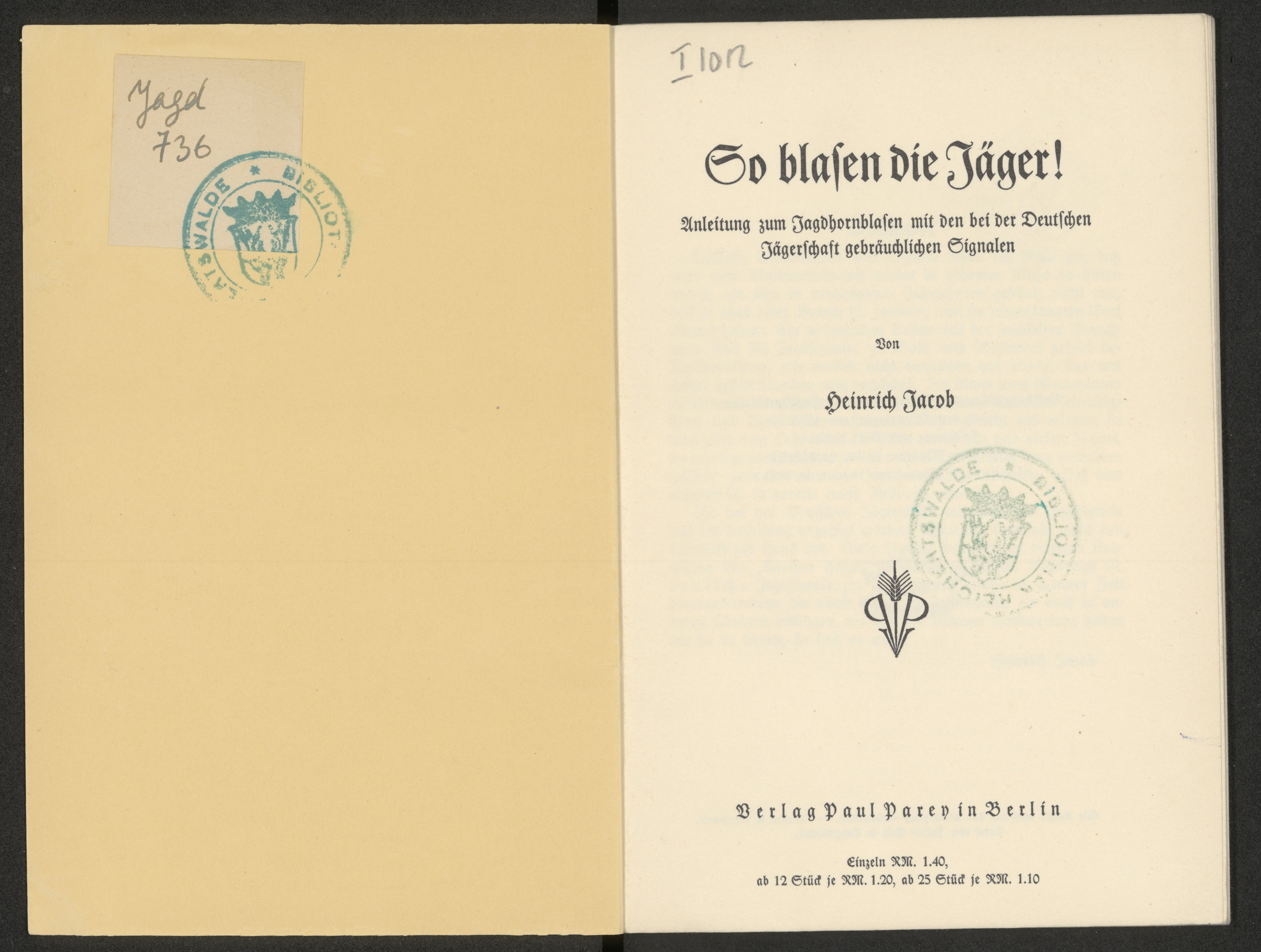 So blasen die Jäger! Anleitung zum Jagdhornblasen mit den bei der Deutschen Jägerschaft gebräuchlichen Signalen - verso okładki przedniej