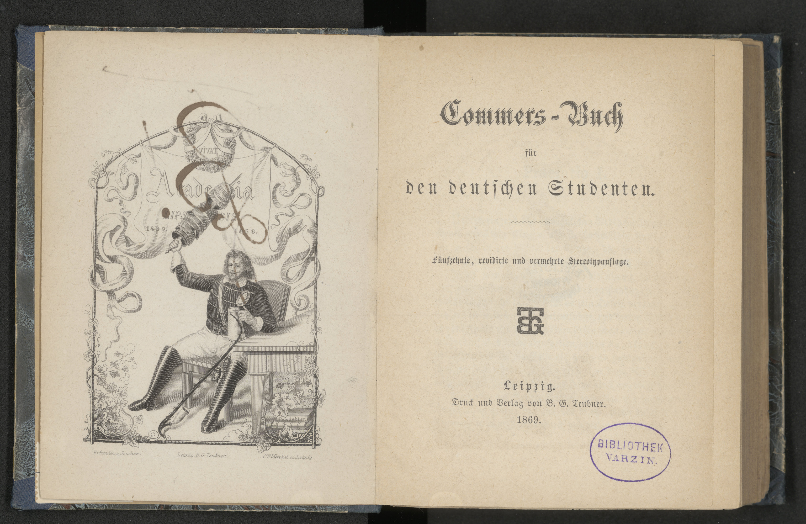 Commers-Buch für den deutschen Studenten - strona tytułowa z pieczątką i przytytułowa z obrazkiem
