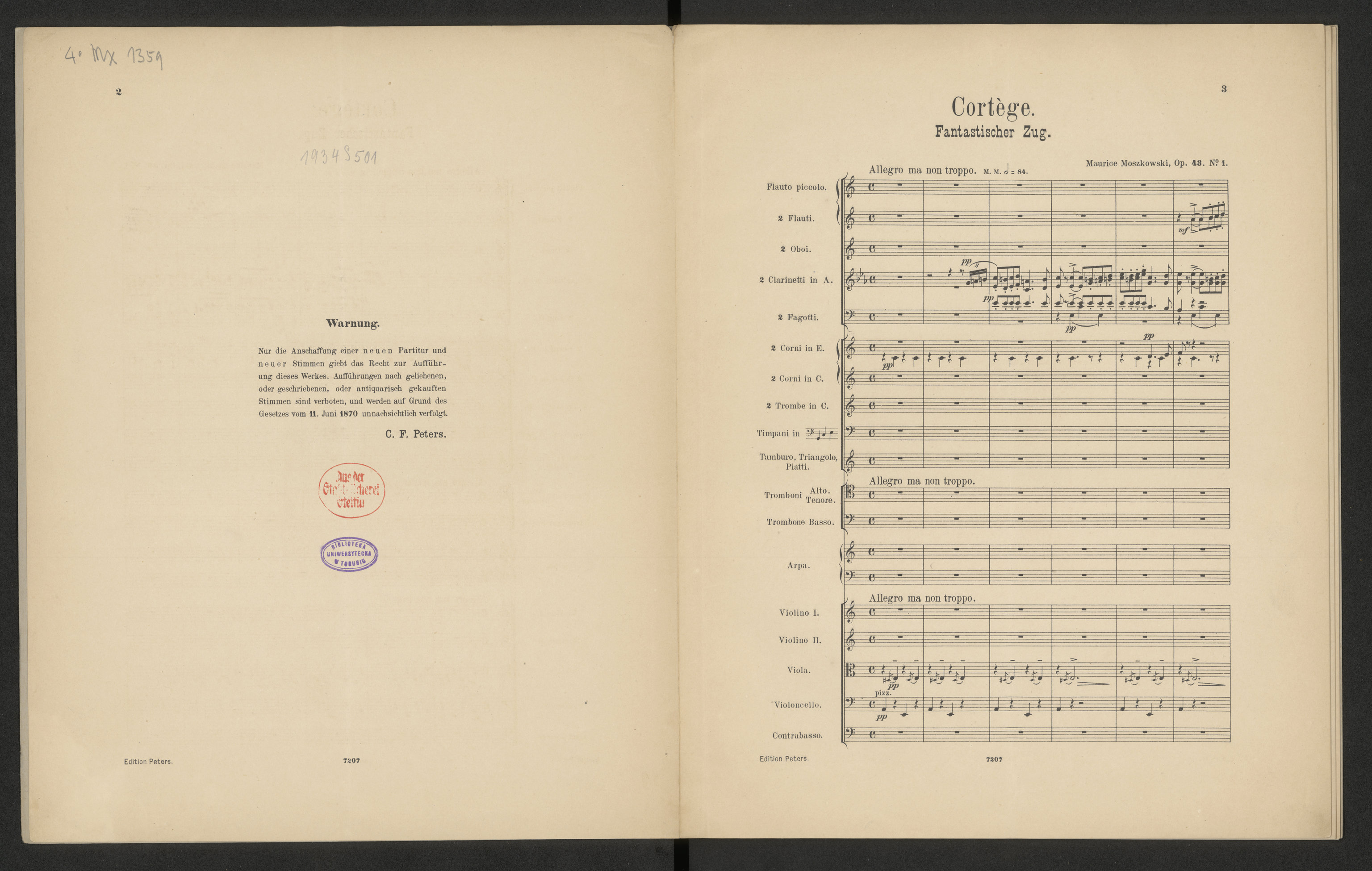 Cortège. Fantastischer Zug : op. 43 No 1 - strona tytułowa verso - owalna pieczątka: Aus der Stadtbücherei Stettin