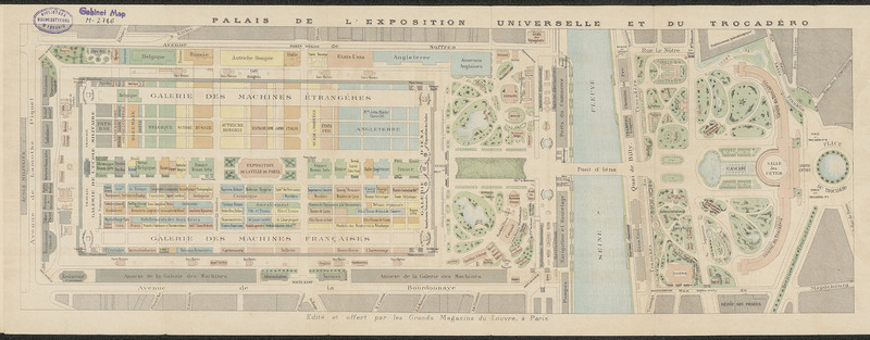 Part of Plan de l'Exposition universelle, édité et offert par les grands magasins du Louvre a Paris