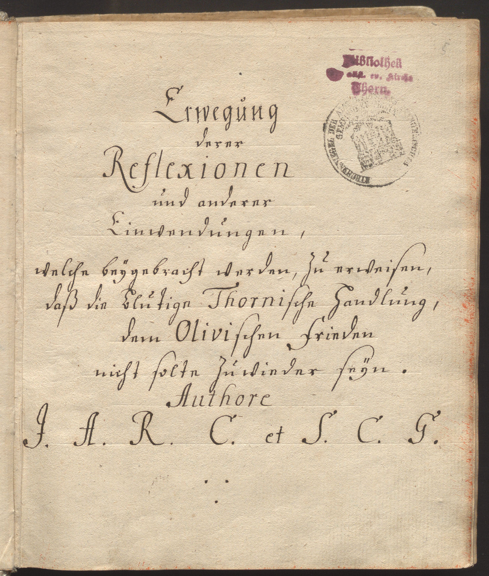 Part of Zbiór pism (także wypisów z akt, odpisów dokumentów) dotyczących spraw dysydentów w Polsce, zwłaszcza w Prusach Królewskich, w XVII–XVIII w., powstały w środowisku luterańskim