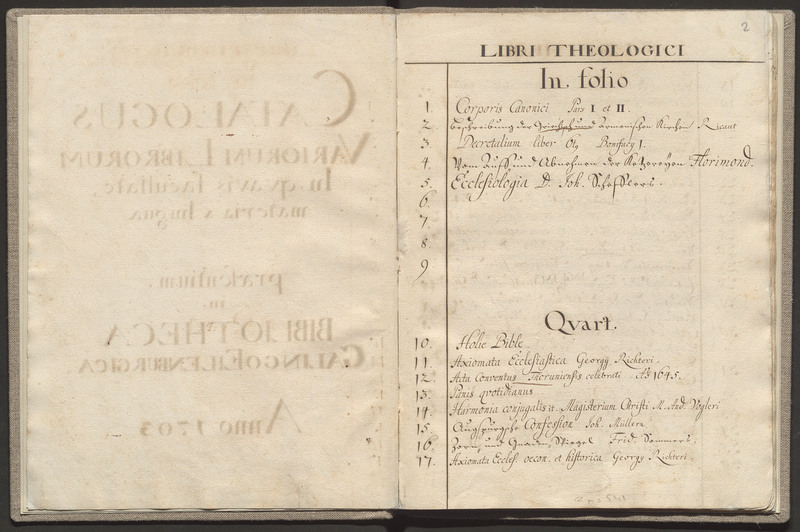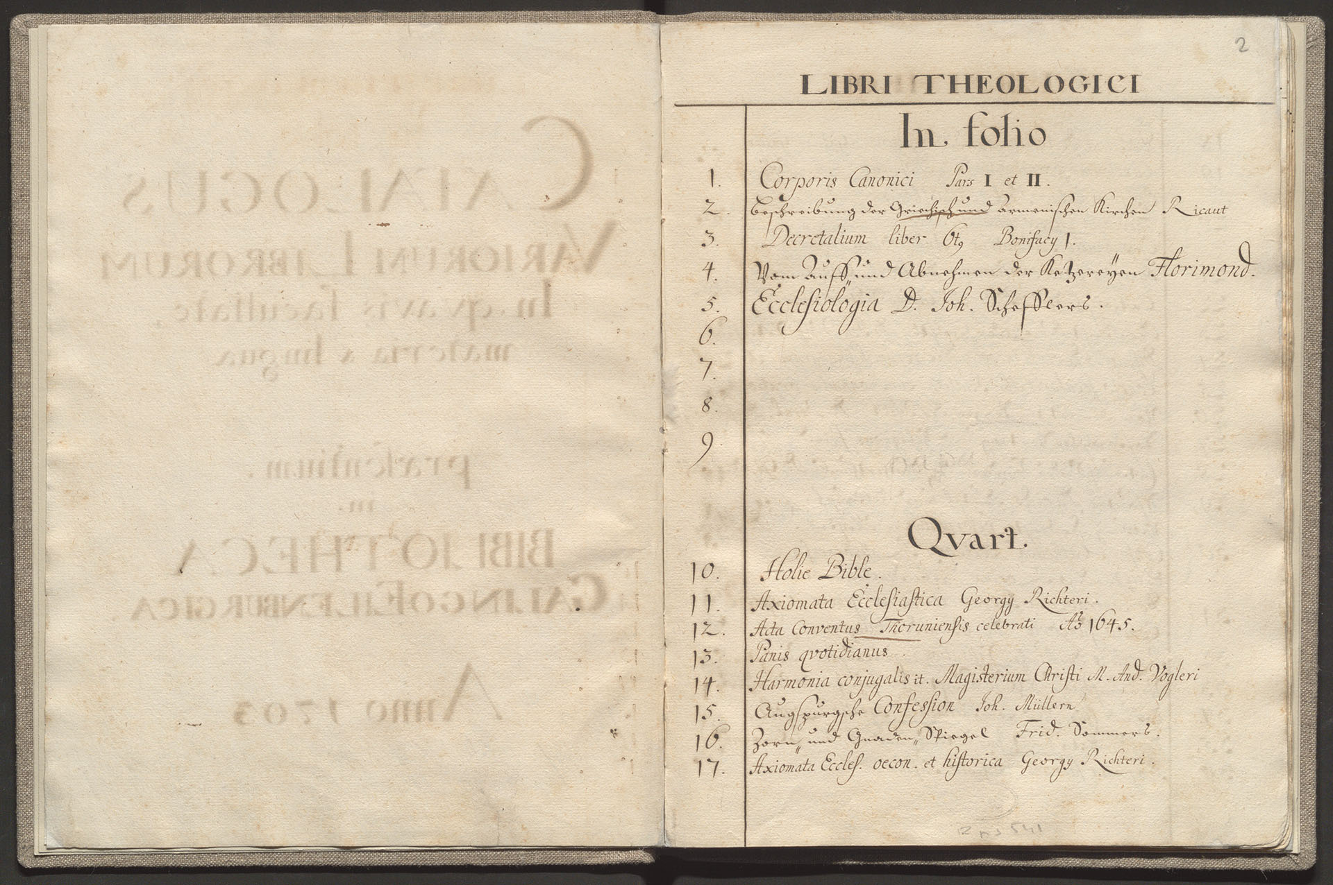 Part of Catalogus variorum librorum in quavis facultate, materia et lingua praesentium in bibliotheca Galingo-Eilenburgica