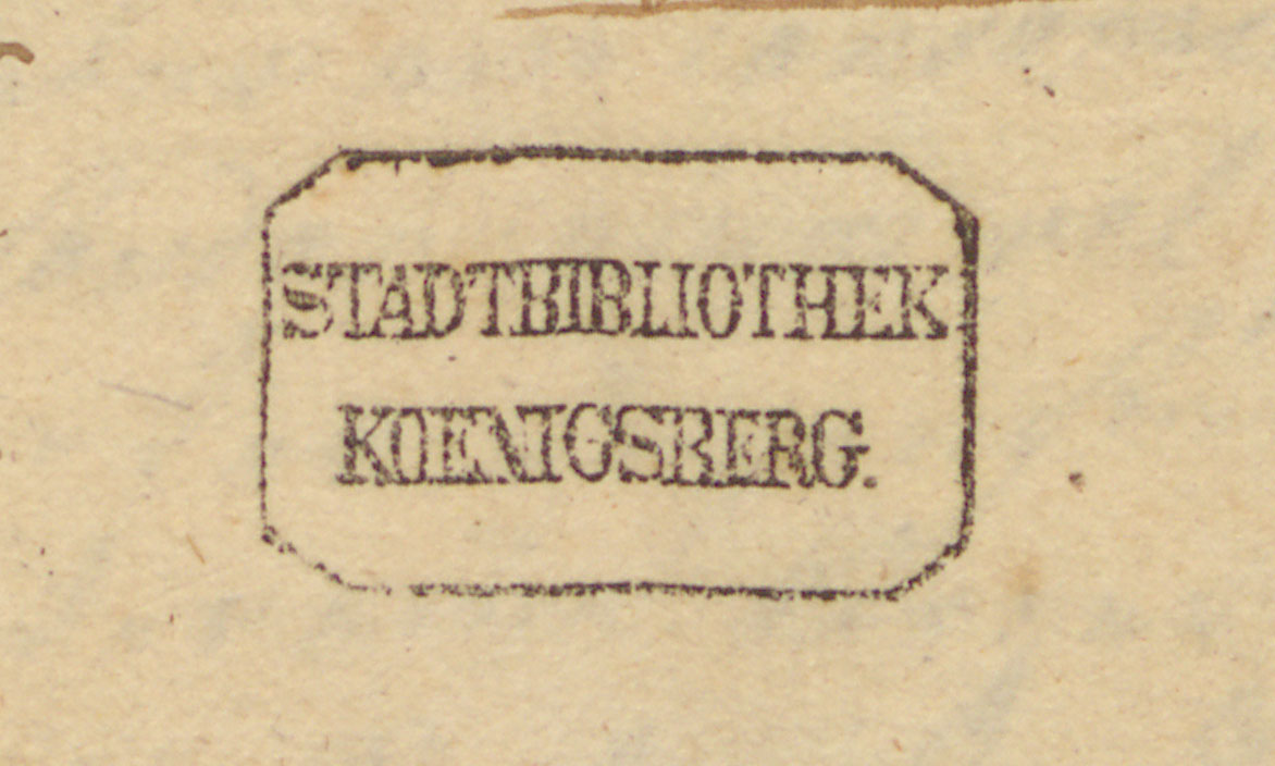 Vorlesungen über das in älteren u[nd] neueren Gesezsammlungen, Edicten, Rescripten, Circularen enthaltene preusz[ische] Recht nach Ordnung der Gesezbuchs für die pr[eussische] Staaten - ośmioboczna pieczątka Stadtbibliothek Koenigsberg (karta 1r)