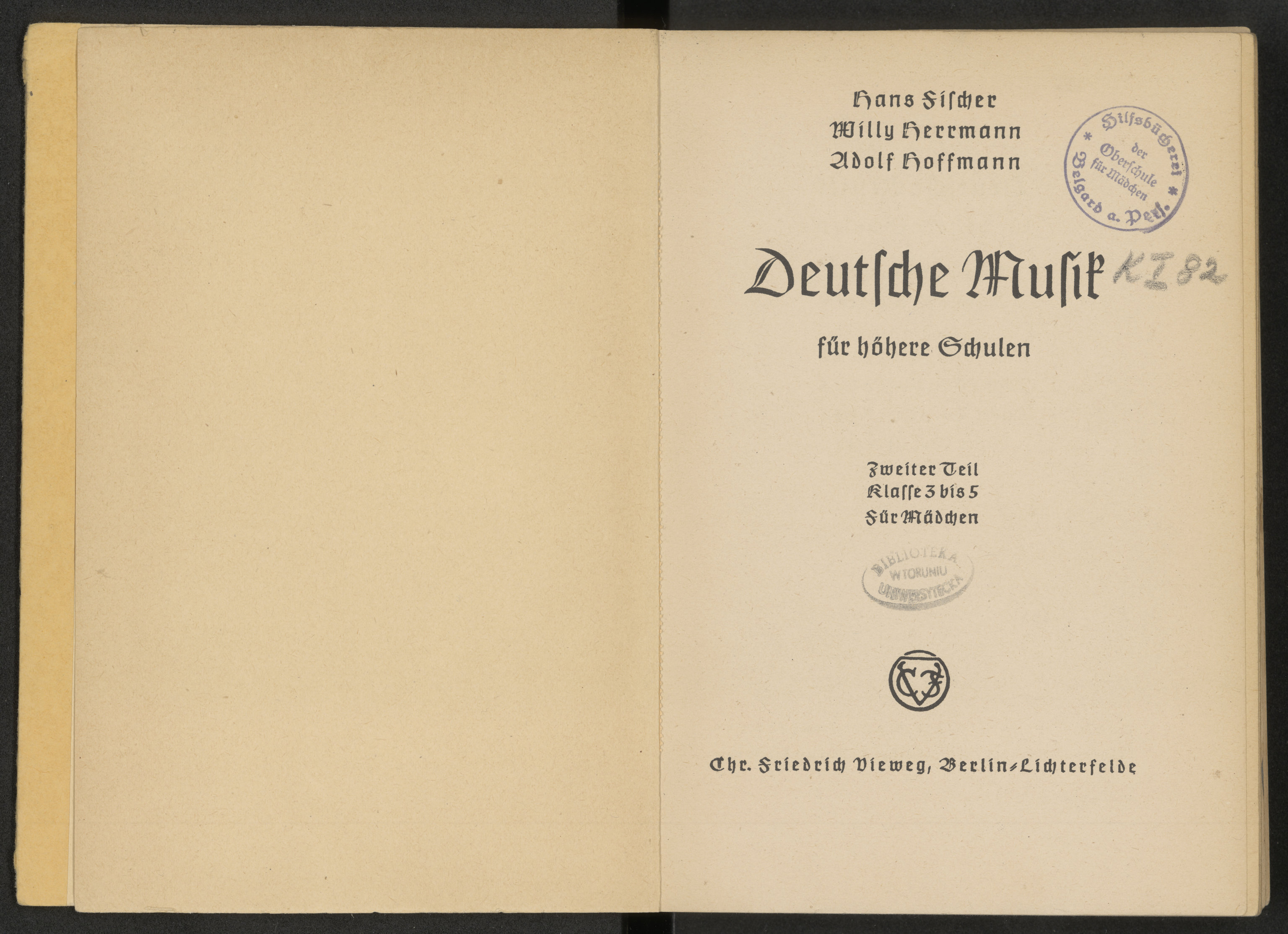7. Pieczątka okrągła niebieska: Hilfsbücherei der Oberschule für Mädchen Belgard a. Pers.