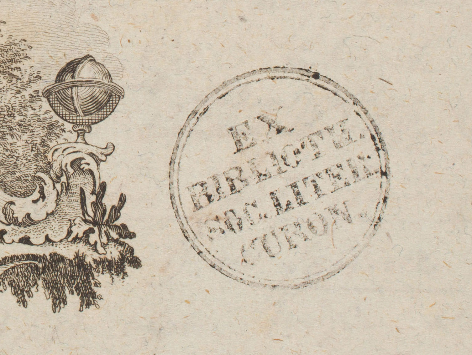 1. Pieczęć okrągła biblioteki Towarzystwa z jej nazwą: "Ex Biblioth[eca] Soc[ietatis] Liter[arum] Curon[ensis]"