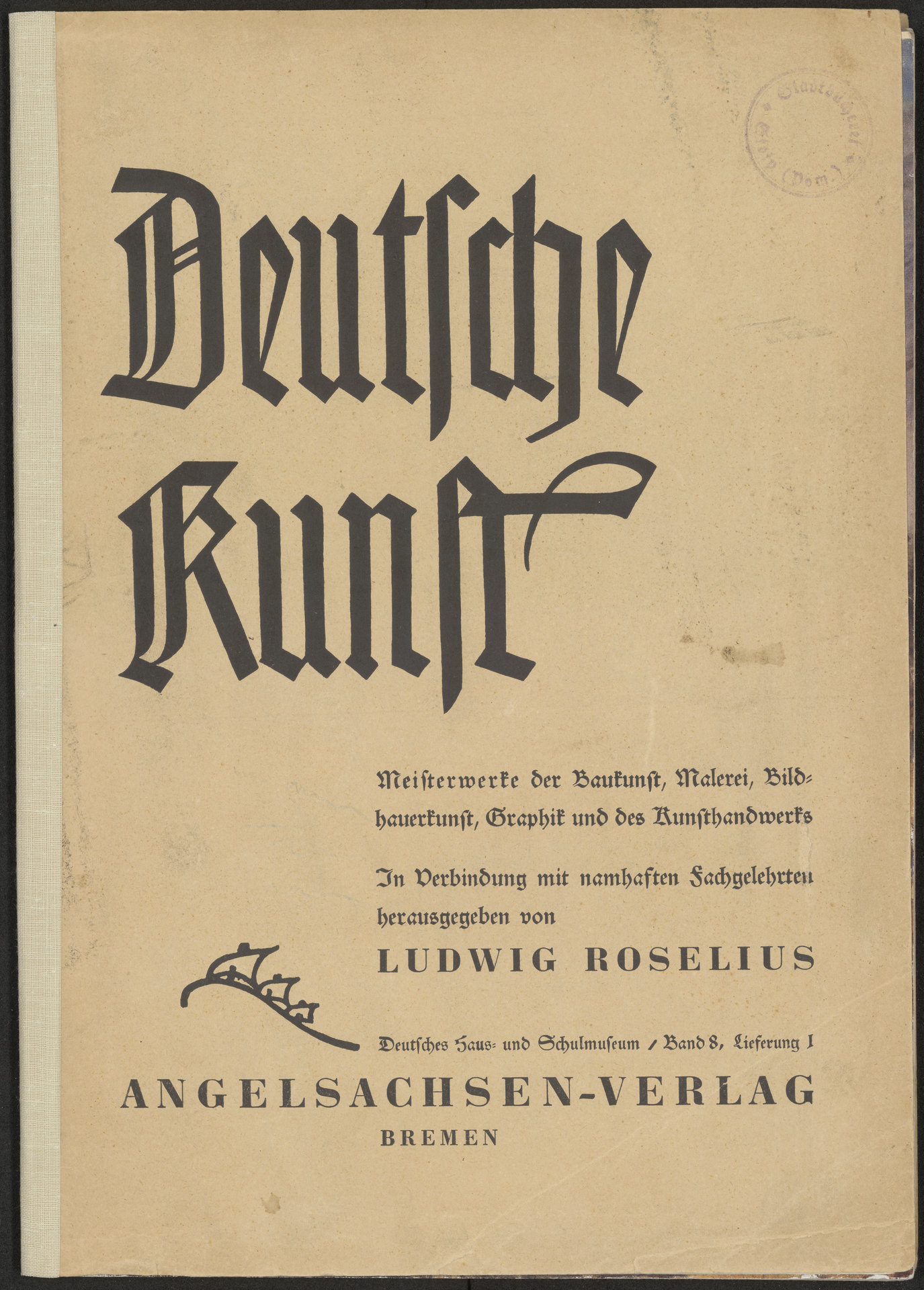 Deutsche Kunst. Meisterwerke der Baukunst, Malerei, Bildhauerkunst, Graphik und des Kunsthandwerks - okładka tomu 8 wraz z pieczątką okrągłą fioletową: Stadtbücherei Stolp (Pom.)