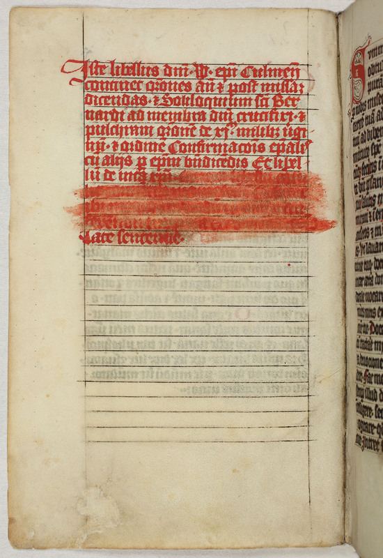 Modlitewnik Wikbolda Dobilsteina - karta 2 verso - nota wskazująca na przynależność modlitewnika do Wikbolda Dobilsteina biskupa chełmińskiego: Iste libellus domini W[icboldi] episcopi Culmensis continet…