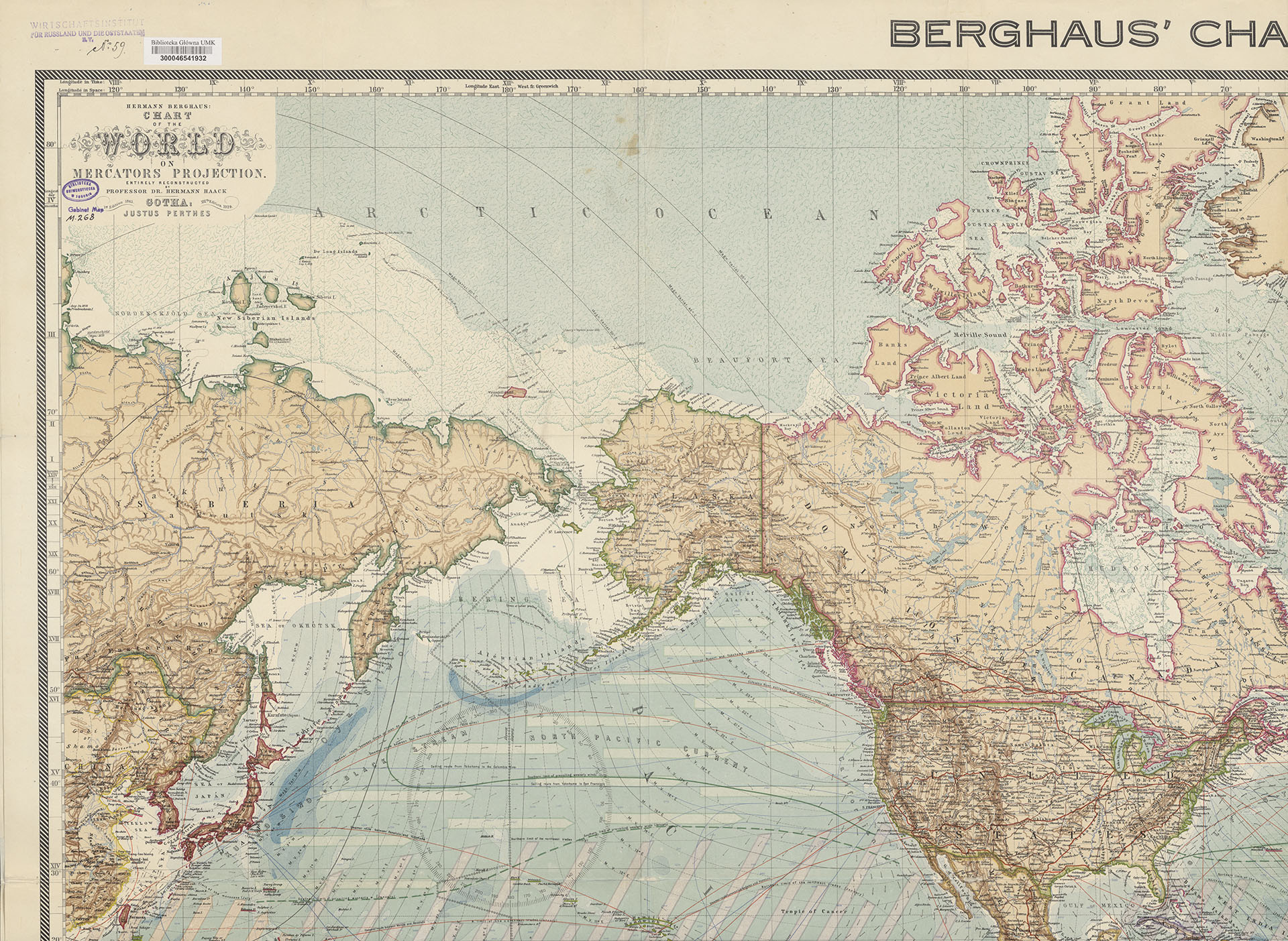Part of Chart of the world on Mercators Projection. Entirely reconstructed by Dr. Hermann Haack. Equatorial Scale 1 : 27 000 000. XVIth Edition 1924