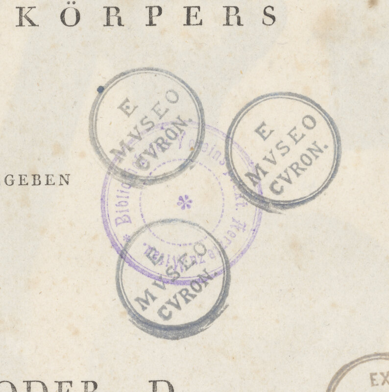 Anatomische Tafeln zur Beförderung der Kenntniss des menschlichen Körpers - okrągła fioletowa pieczątka i nadbite 3 okrągłe zielone pieczątki