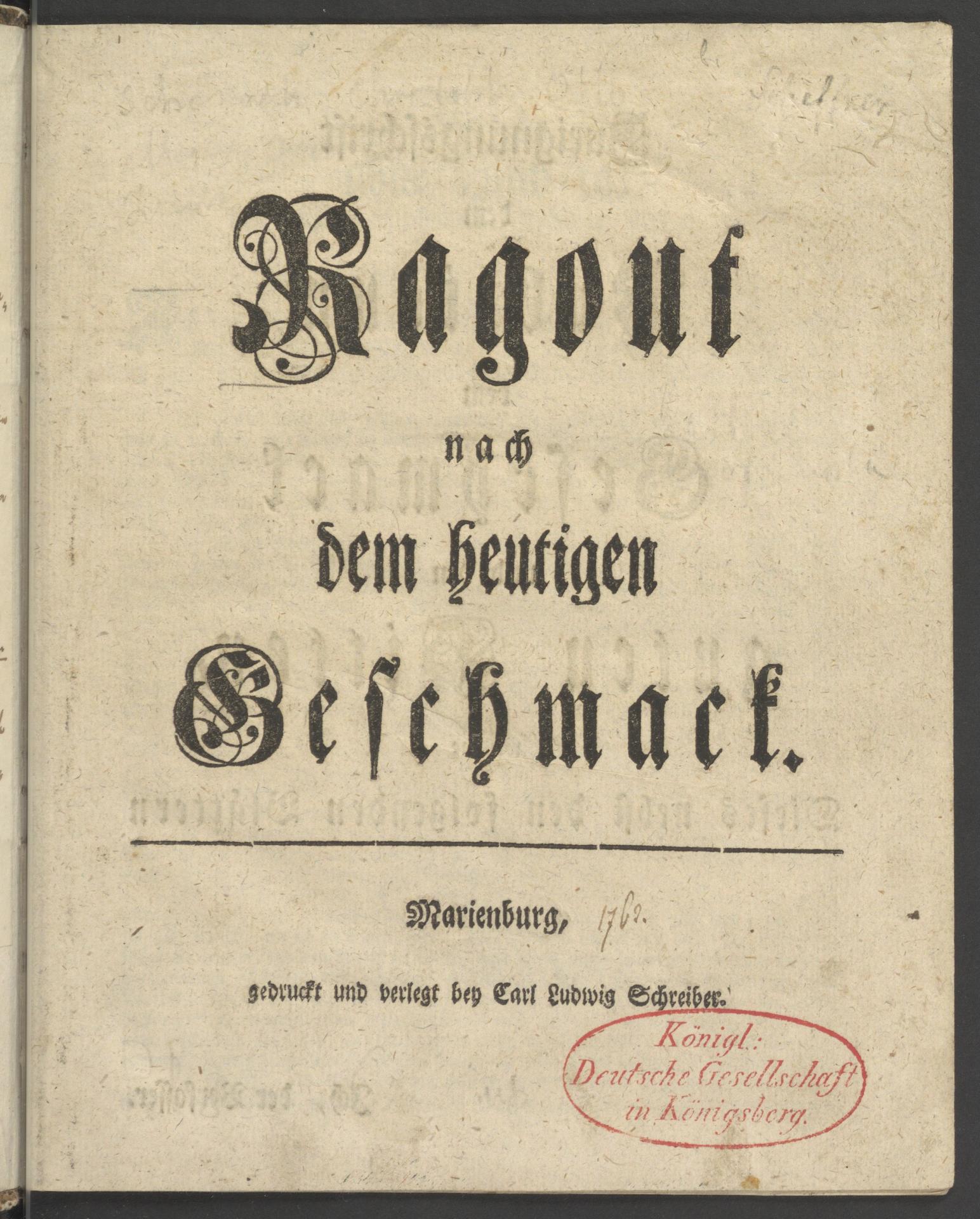 Ragout nach dem heutigen Geschmack - strona tytułowa