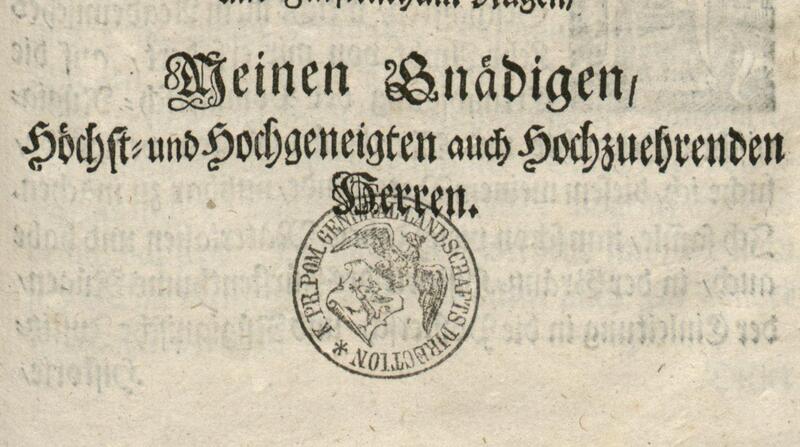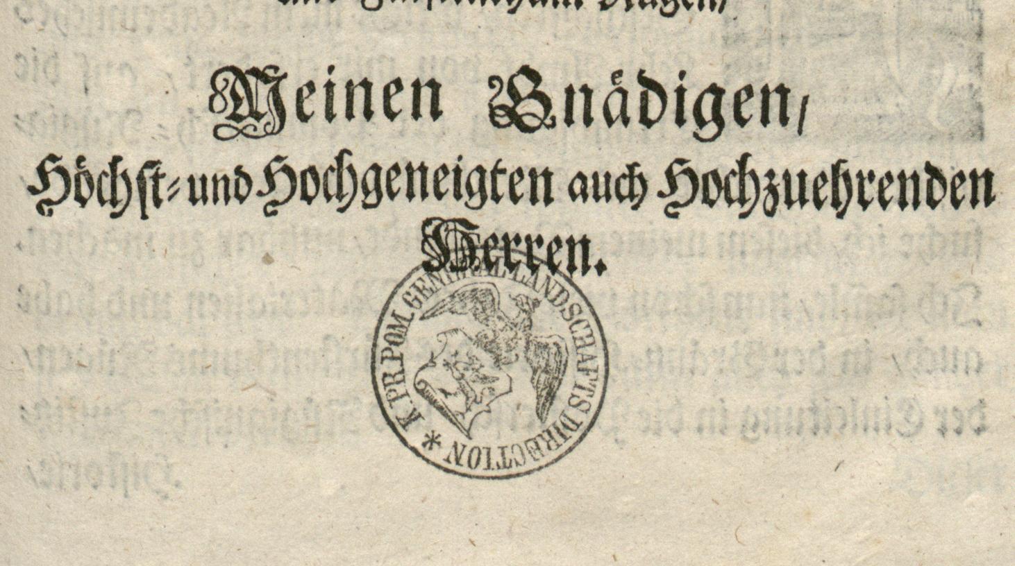 Versuch einer Pommersch- und Rügianischen Lehn-Historie Erhaltend die zum Lehn-Wesen dieser Lande gehörige Geschichte und Merckwürdigkeiten, von den ältesten, bis auf die heutige Zeiten - okrągła pieczątka