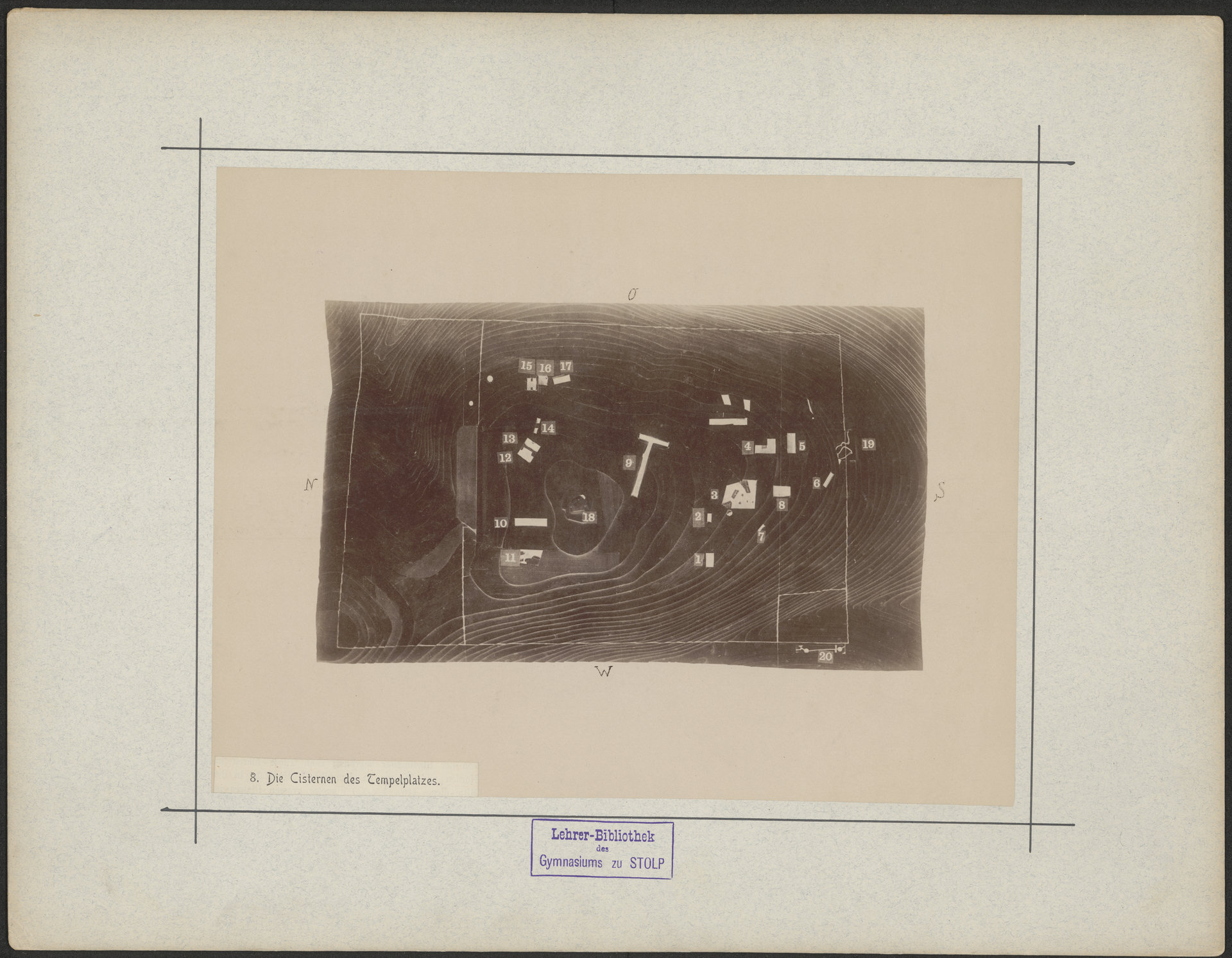 Der Tempel und der Tempelplatz in Jerusalem im Verlauf der Jahrtausende - karta fotografii 8 z pieczątką prostokątną Lehrer-Bibliothek des Gimnasiums zu STOLP