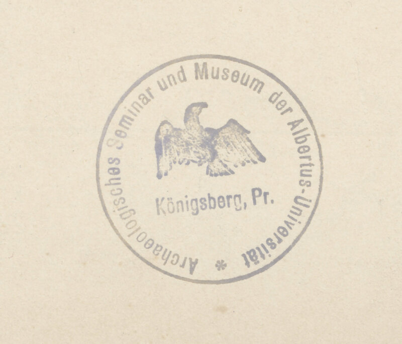 [Kobieta w rzeźbie greckiej] - okrągła pieczęć na awersie tablic: Archeologisches Semminar und Museum der Albertus-Universität Königsberg, Pr.