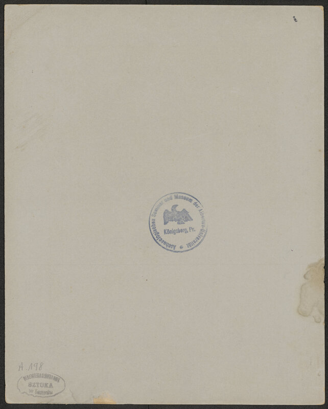 [Statuy antyczne. Fotografie rzeźb i płaskorzeźb antycznych] - okrągła pieczęć na awersie tablic: Archeologisches Semminar und Museum der Albertus-Universität