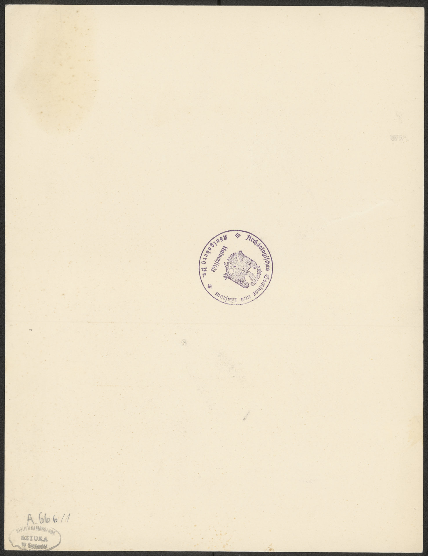 [Portret męski- rzeźba] - okrągła pieczęć na awersie tablic: Archäologisches Semminar und Museum Universität Königsberg Pr.