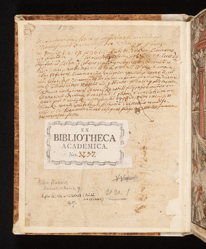 De Warheyt my gantz frömde ys De Trüwe gar seltzen, dat ys gewiß... - wyklejka górnej okładziny z ekslibrisem "Ex Bibliotheca Academica"