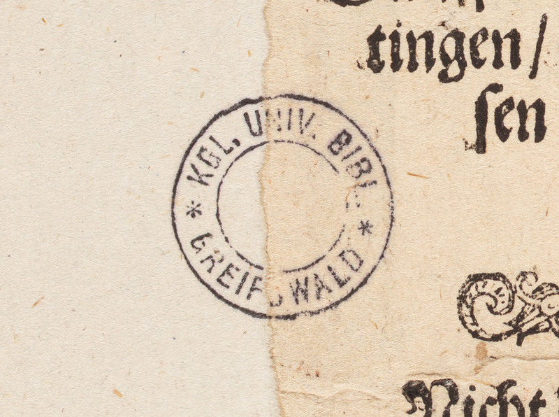 De Warheyt my gantz frömde ys De Trüwe gar seltzen, dat ys gewiß... - pieczątka okrągła: "KGL. UNIV. BIBL. * GREIFSWALD *"