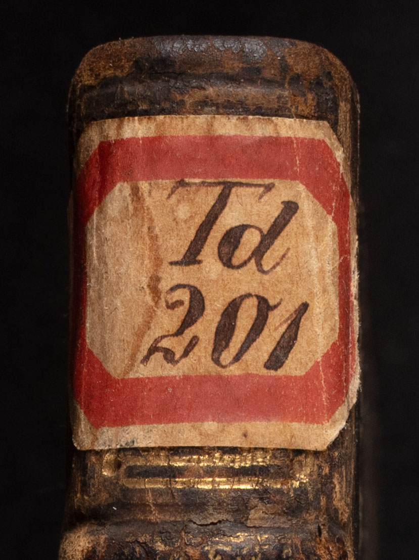 Petri Laurembergii Rostochiensis Apparatus Plantarius Tributus in duos libros... - nalepka sygnaturowa na grzbiecie