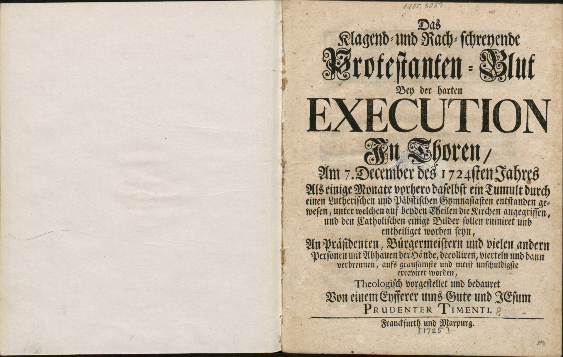 Das Klagend- und Rach-schreyende Protestanten-Blut... - wolna karta wyklejki i strona tytułowa