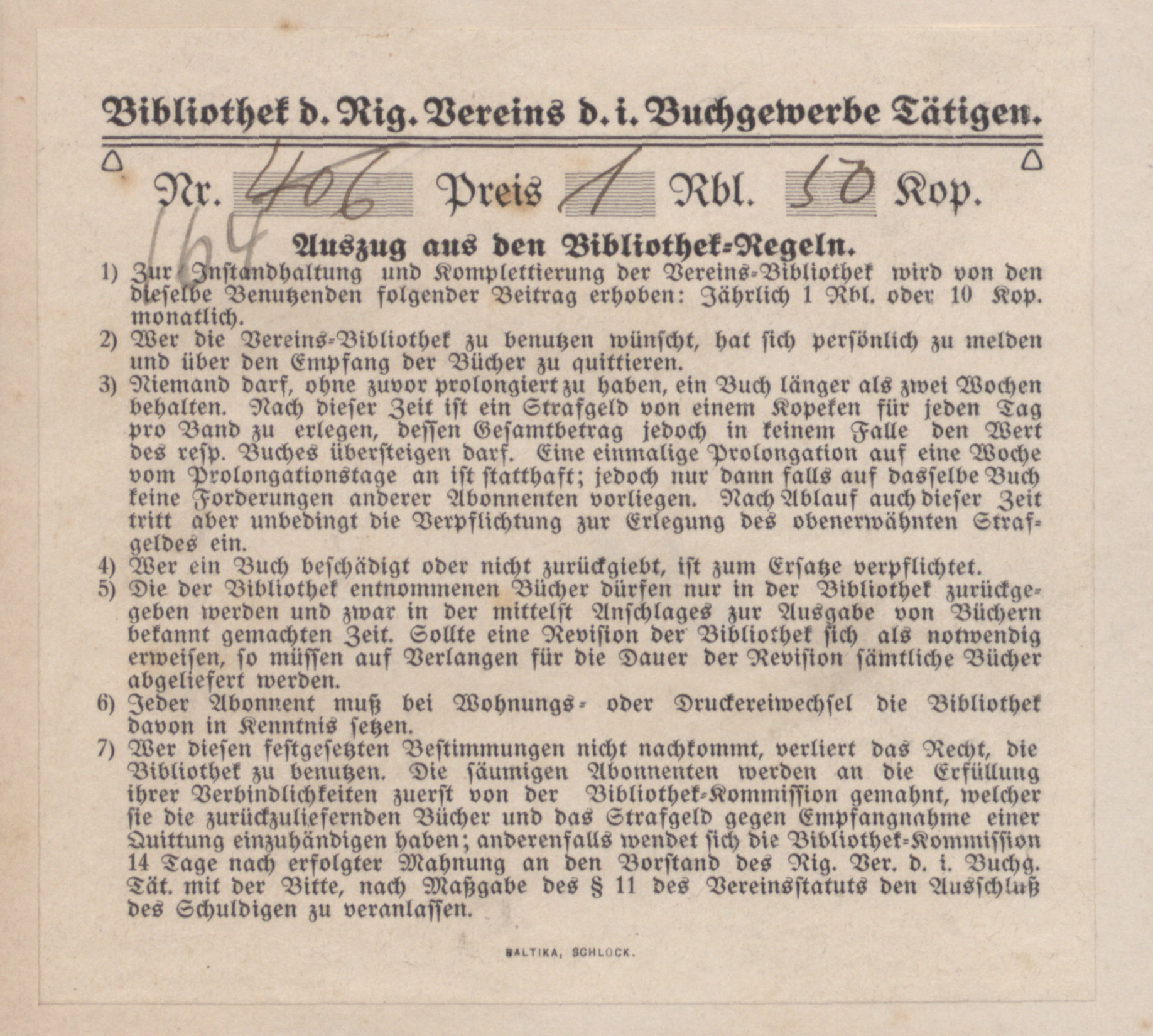 Rigaer Theater- und Tonkünstler-Lexikon : nebst Geschichte des Rigaer Theaters und der Musikalischen Gesellschaft - naklejka: Auszug d. Rig. Vereins d. i. Buchgewerbe Tätigen