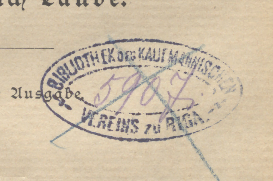 Die Bandomire : Kurische Erzählung ; Bandomire - pieczątka „Bibliothek des Rigaer Kaufmännischen Vereins”