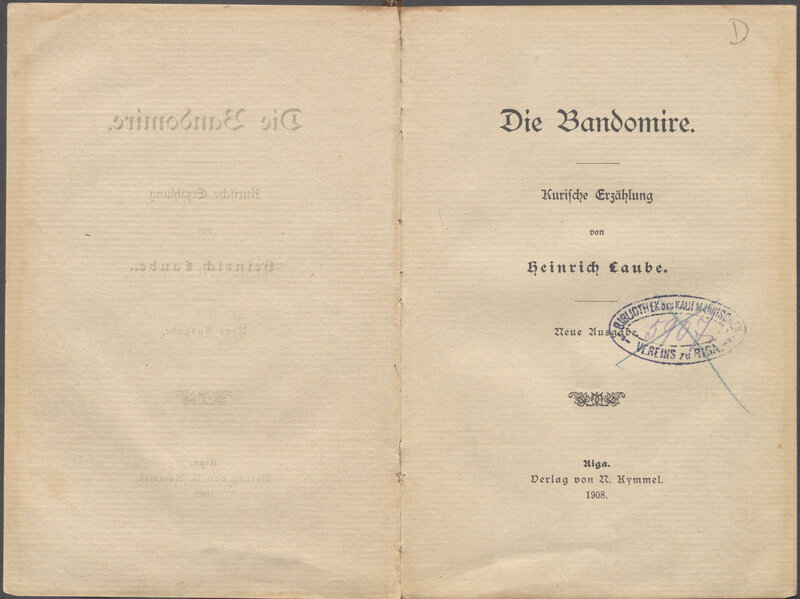 Die Bandomire : Kurische Erzählung ; Bandomire - strona tytułowa z pieczątką