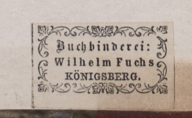 Landbuch des Herzogthums Stettin, von Kamin und Hinterpommern... - prostokątna naklejka introligatora "Buchbinderei: Wilhelm Fuchs. Königsberg."