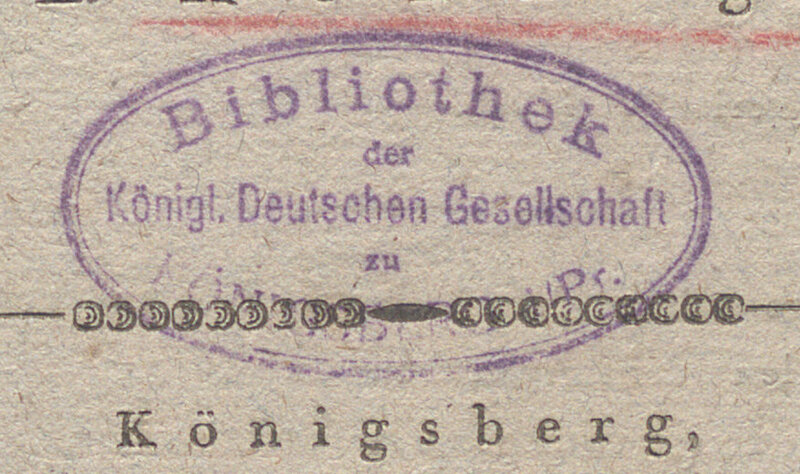 An mein Vaterland... - pieczątka owalna "Bibliothek Königl Deutschen Gesellschaft zu Könibsberg Pr."