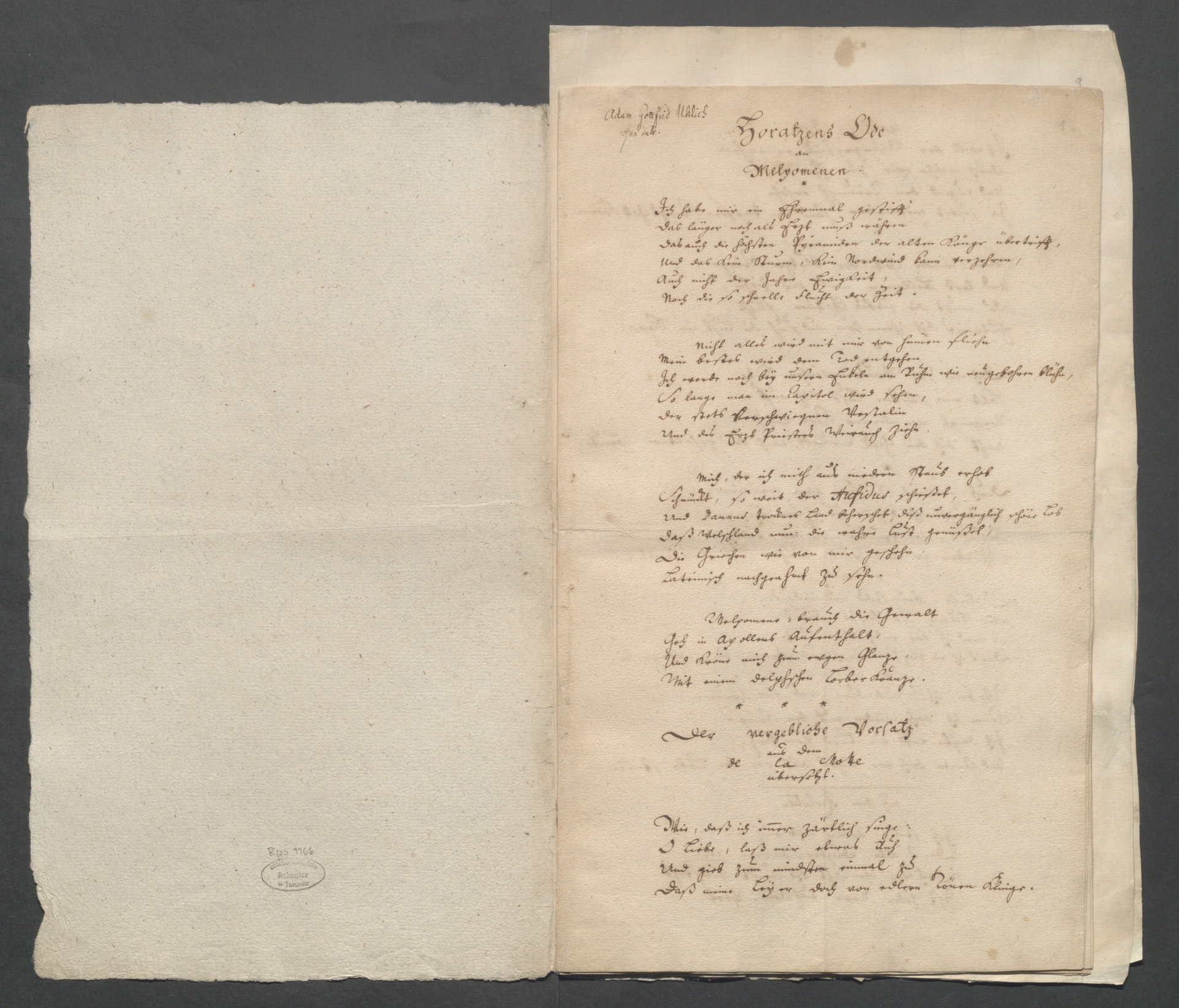 Part of Wiersze i kantaty, głównie o treści patriotycznej, na cześć Fryderyka II i jego zwycięstw w wojnach śląskich