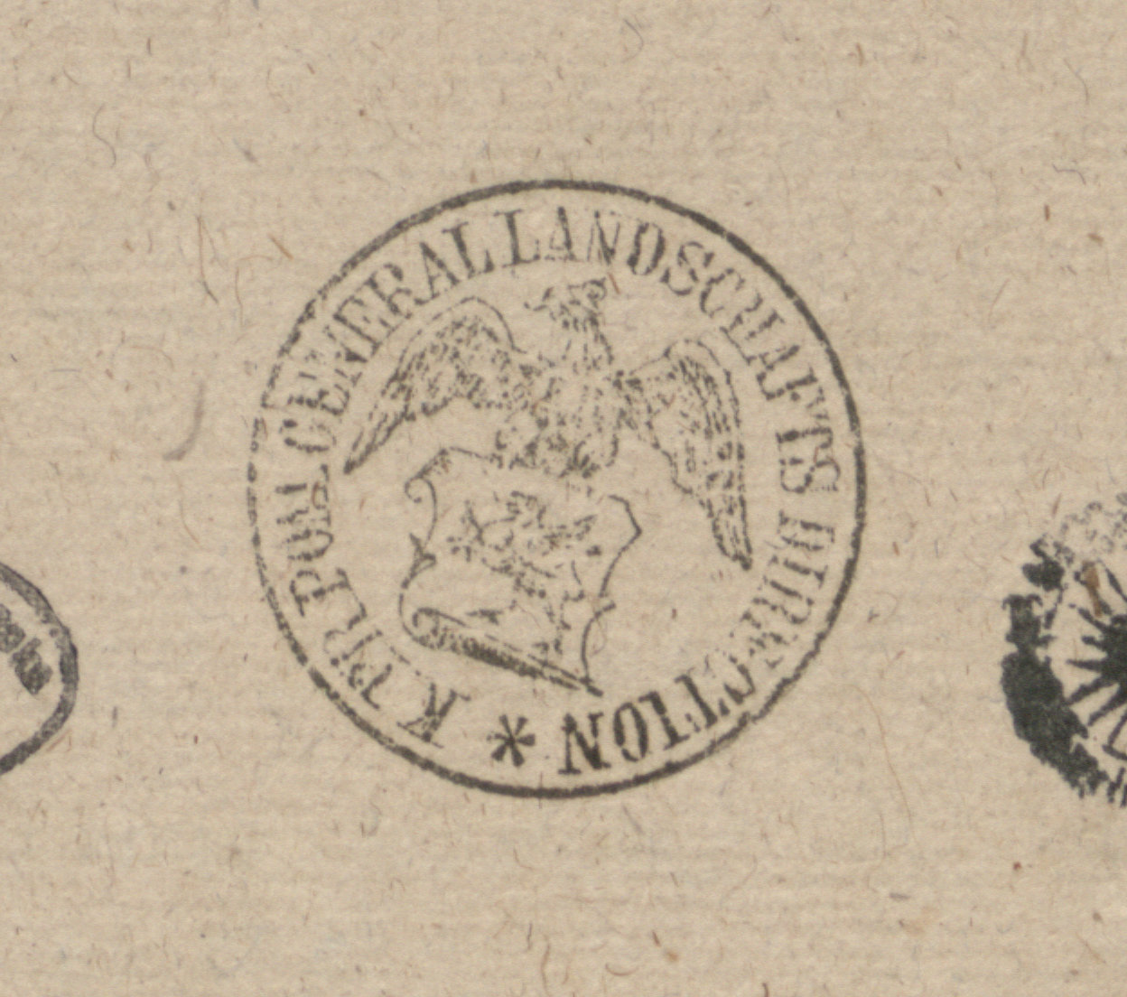 Tractatus de Statu Pomeraniae et praecipue de iuribus ordinum - pieczęć Generalnej Dyrekcji Ziemstwa Kredytowego w Szczecinie na karcie 1 recto