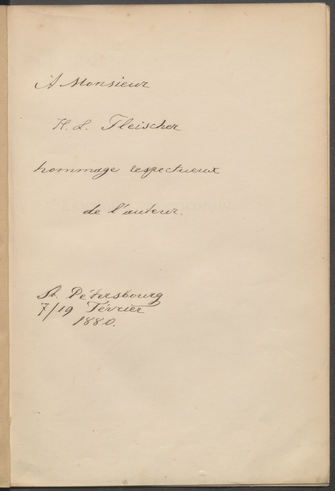 Canticum canticorum -dedykacja autorska dla Heinrich Leberecht Fleischer (1801-1888), niemieckiego orientalisty