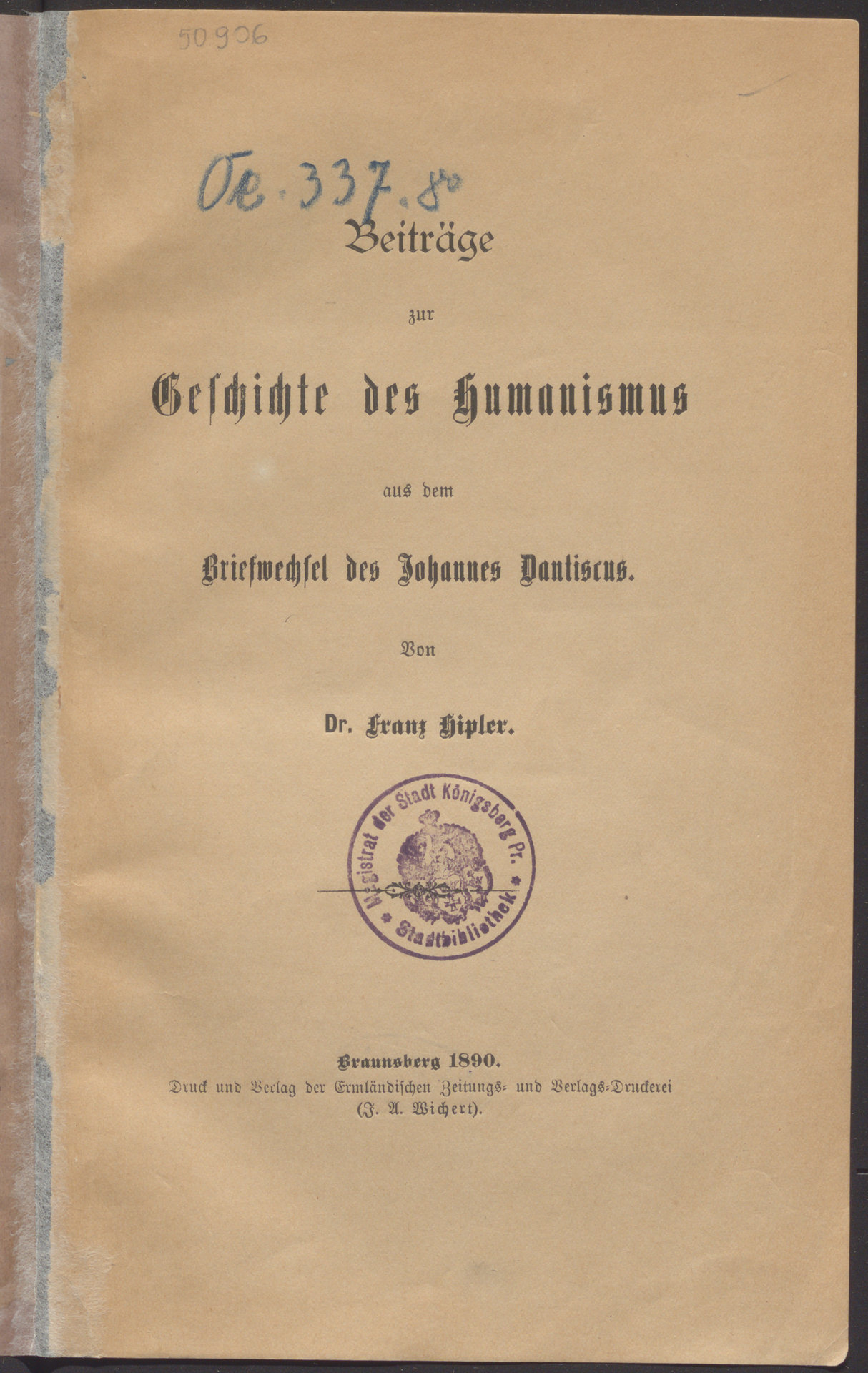 Part of Beiträge zur Geschichte des Humanismus aus dem Briefwechsel des Johannes Dantiscus